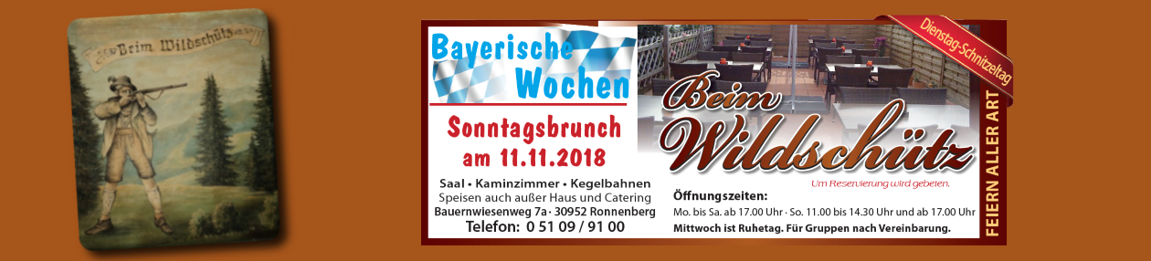 Deutsche Küche und Wildspezialitäten in Ronnenberg | Familienfeiern Weihnachtsfeier Betriebsfest Hochzeitsfeiern Nähe Hannover